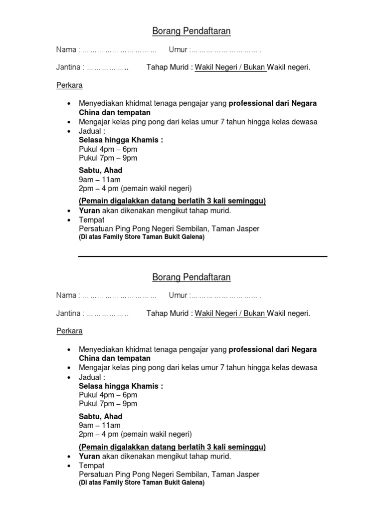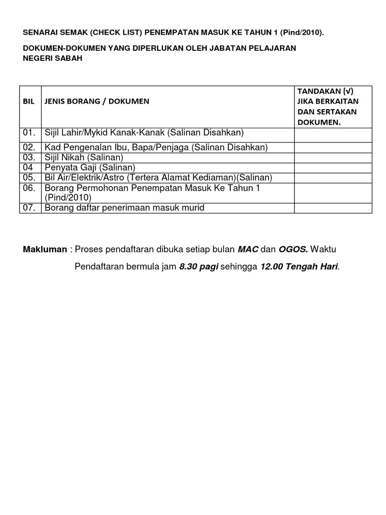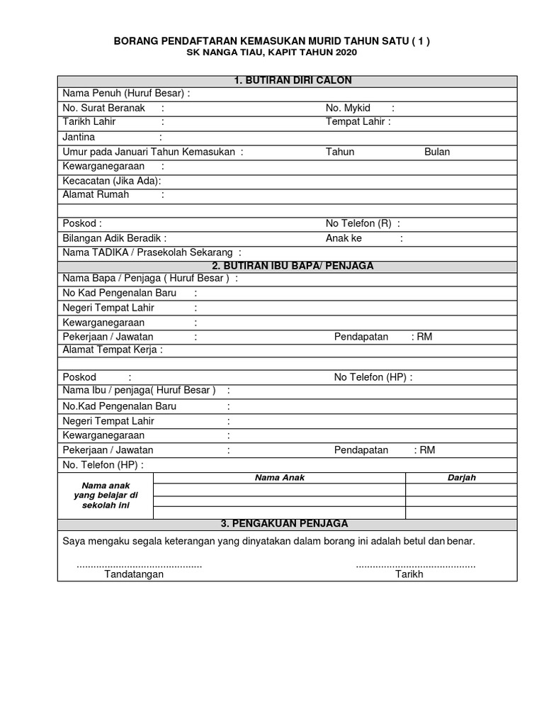 Contoh Borang Pendaftaran Tahun 1 Manual