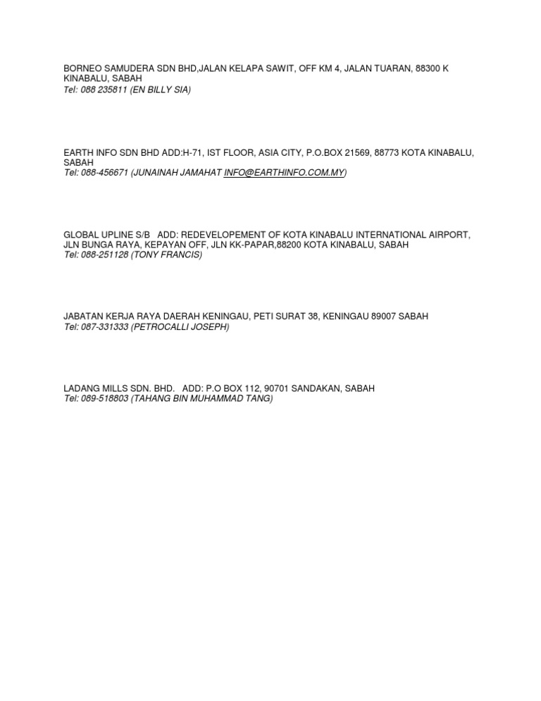 Sandakan Edible Oils Sdn Bhd Sandakan Traceability Samudera Sdn Bhd Borneo Samudera Sdn Bhd Lumadan Mill X X Tung Hup Palm Oil Mill Sdn Bhd Tung Hup Palm Oil Mill Sdn Bhd