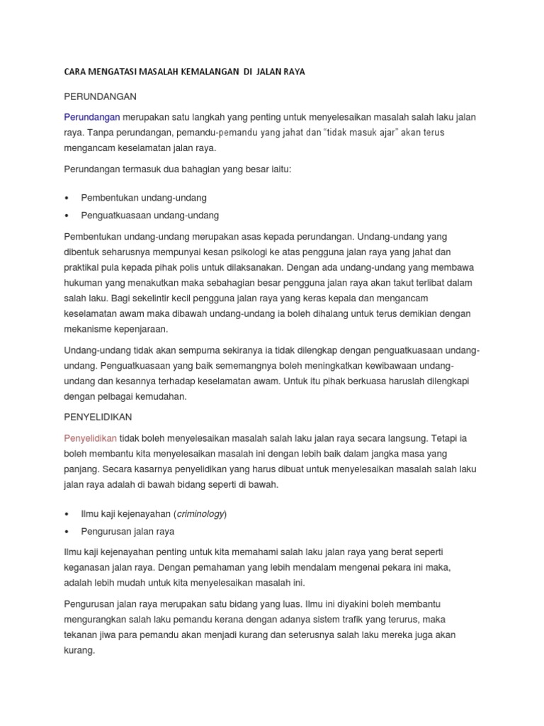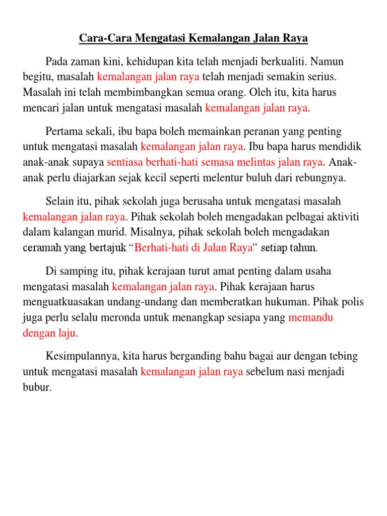 Karangan Langkah Langkah Mengurangkan Kemalangan Jalan Raya