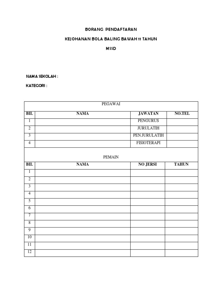 Borang Pendaftaran Pemain