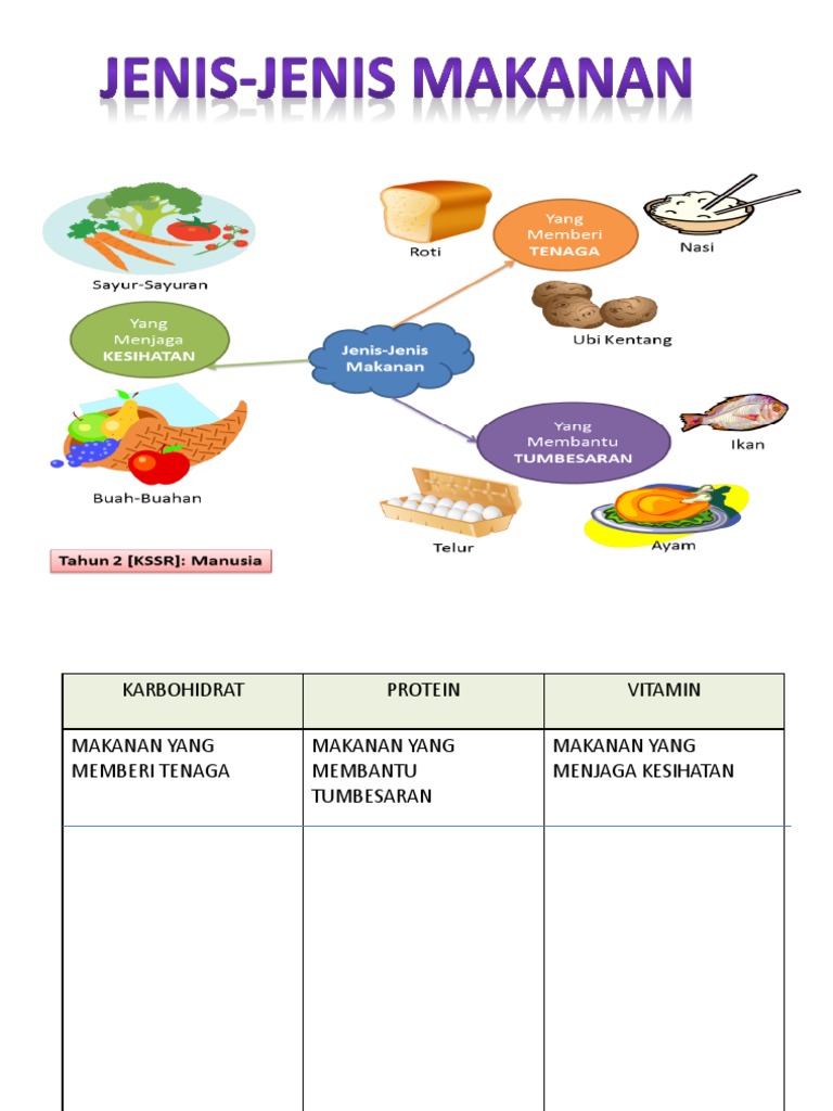Dunia Sains Dan Teknologi Tahun 2 Makanan Yang Memberi Tenaga