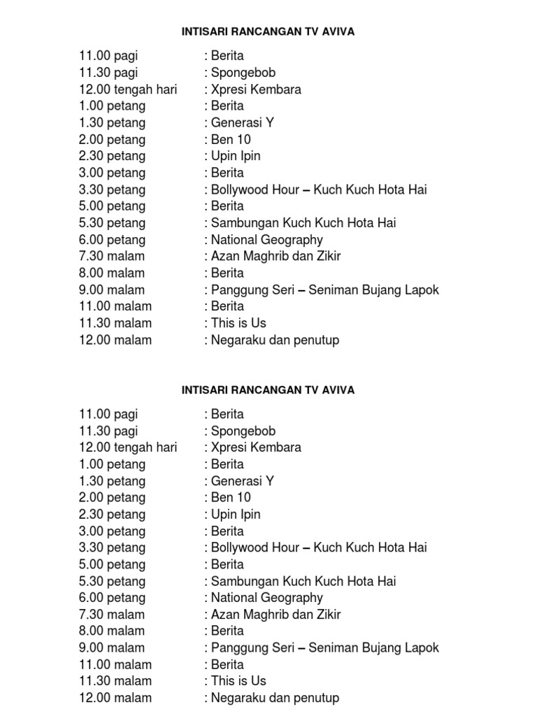 Intisari Rancangan Tv Aviva