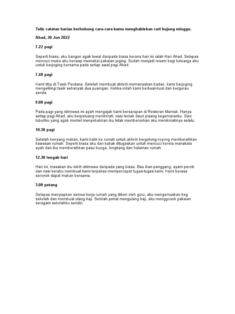 Karangan Catatan Aktiviti Hujung Minggu Bersama Keluarga