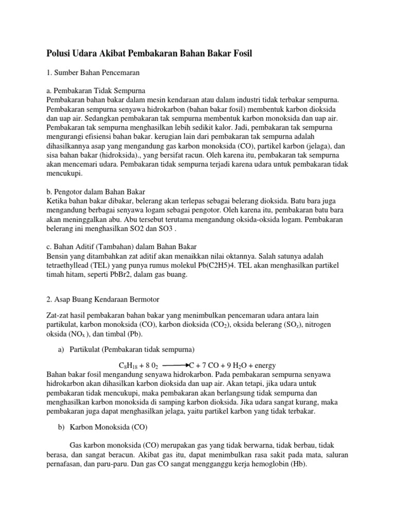 Dampak Pembakaran Bahan Bakar Bensin Terhadap Lingkungan Geografi Sridianti Com