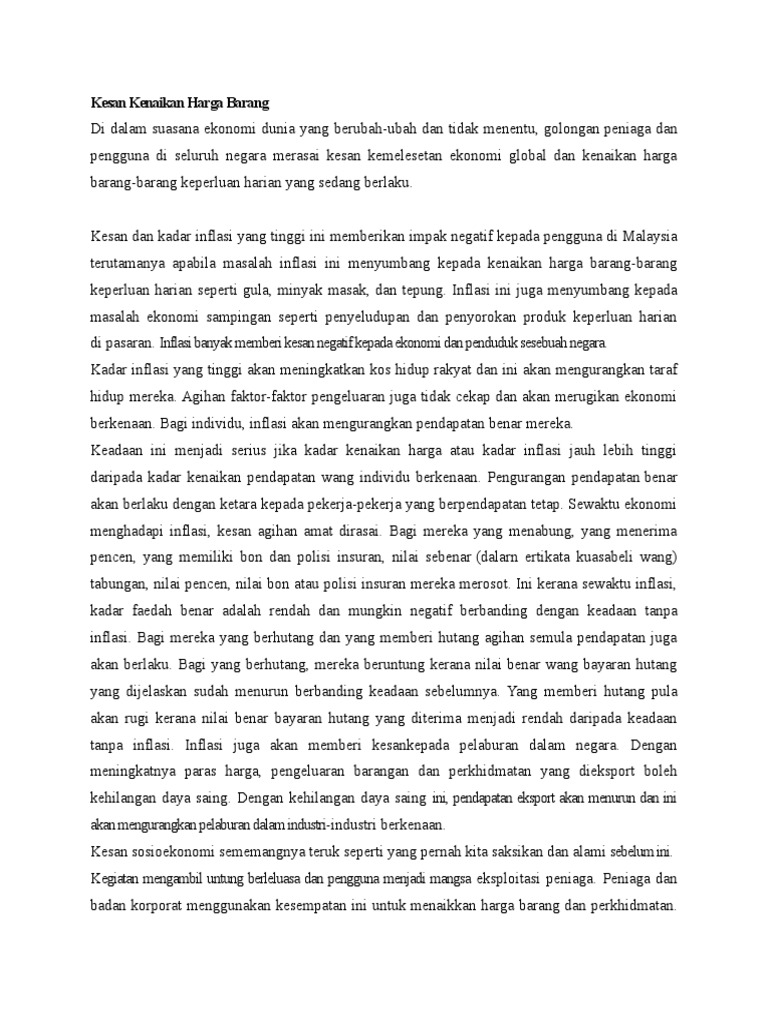 Karangan Punca Dan Kesan Kenaikan Harga Barang Docx