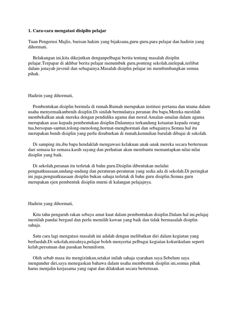 Dalam menangani masalah disiplin pelajar ini ada beberapa langkah yang perlu dilakukan oleh pelbagai pihak. Posted on 14 mac 2008 by admin masalah disiplin boleh dikaitkan dengan kegagalan pelajar di sekolah untuk mematuhi peraturan yang telah ditetapkan. Masalah disiplin pelajar perlu dibanteras kerana ia boleh mendatangkan kesan buruk kepada masyarakat dan negara. Dalam mengatasi masalah disiplin pelajar pihak sekolah patut memainkan peranan utama.