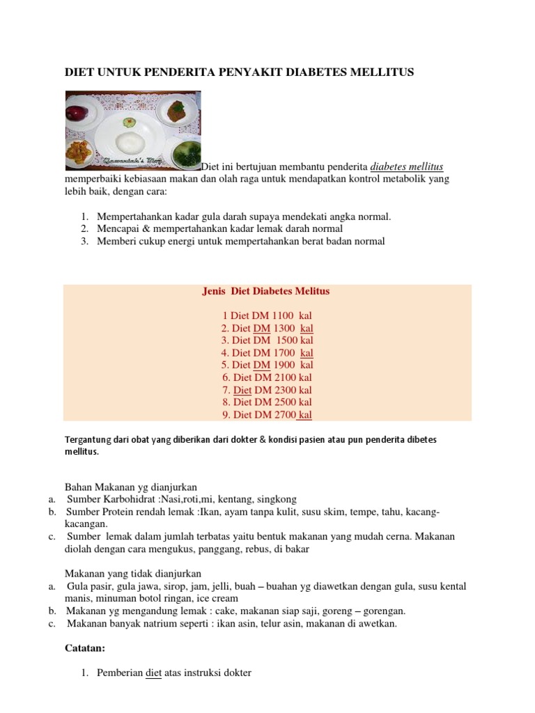 Diet Untuk Penderita Penyakit Diabetes Mellitus