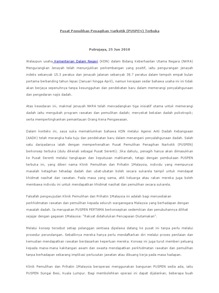 Senarai Sentra Pemulihan Puspen Agensi Anti Dadah Kebangsaan Munaz Bagus